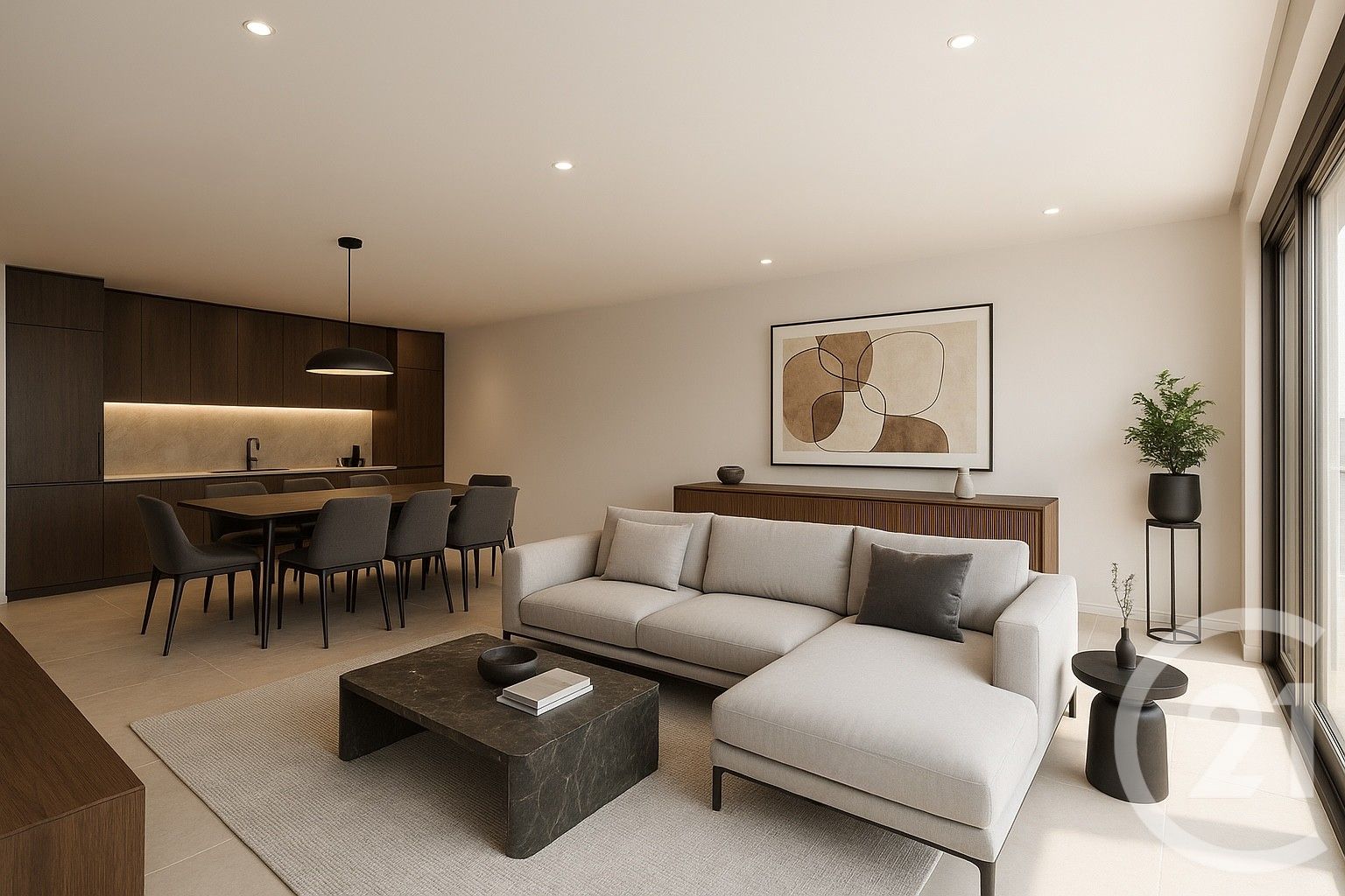 - Séjour + cuisine américaine (37,5 m2)